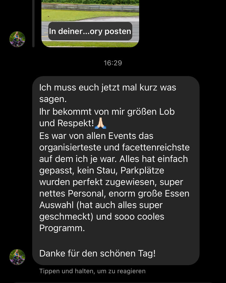 Was ist besser als: laute Motoren, Rennsport, Tuning, Rallye, gutes Essen & Getränke, Stargäste und Profis, freies Fahren am Ring, 1/4 Meile Vergleichsfahrten, TCR Europe, Formel 4, Programm für Kinder, Camping, Partys, öffentliche Dienste und Showeinlagen von Polizei, Feuerwehr oder Bundesheer?