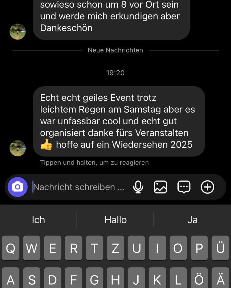 - Anreise möglich ab Freitag 16:00 bis 19:00 Uhr (ermöglicht dir auch die besseren Plätze am Gelände) od. Samstag/Sonntag 07:00 - 09:00
